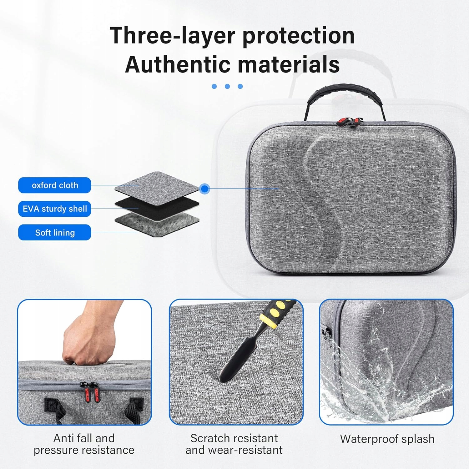 【Безпечний та надійний】 Виготовлений з високоякісного корпусу подорожі матеріалами з твердою оболонкою до Meta Quest 3S/Quest 3 є твердим та міцним, ефективно захищаючи пристрій від пошкоджень. Побудовані -в карт та гнучкі смуги в поєднанні з м'якою підкладкою та відсіками, зберігайте набір навушників VR та інші аксесуари в порядку, стійкий та стійкий до потрясінь, забезпечуючи комплексний захист. (Щоб забезпечити адекватну придатність у цьому випадку, ви повинні повністю згорнути регульовану пов'язку Bobovr S3 Pro перед тим, як розмістити його поруч із Meta Quest 3S/Quest 3.) Легкий дизайн, що підходить для зберігання вдома та подорожей.