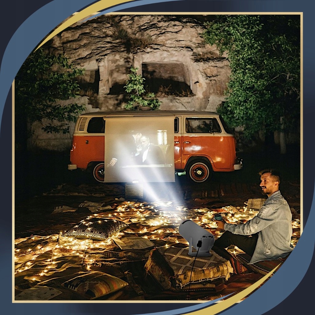 4 Завдяки компактному дизайну та мобільності ви можете насолоджуватися фільмами, іграми чи презентаціями в будь -якому місці. Незалежно від оточення, у вас завжди є високоякісне зображення та звук під рукою .проста, миттєва конфігурація дозволяє встановити ідеальний кут і різкість за кілька моментів - без кабелів, важких налаштувань або втрати часу. Лише один клацання, щоб почати екранізацію та зануритися у світ розваг. Це кіно без обмежень - коли ти хочеш і де хочеш!