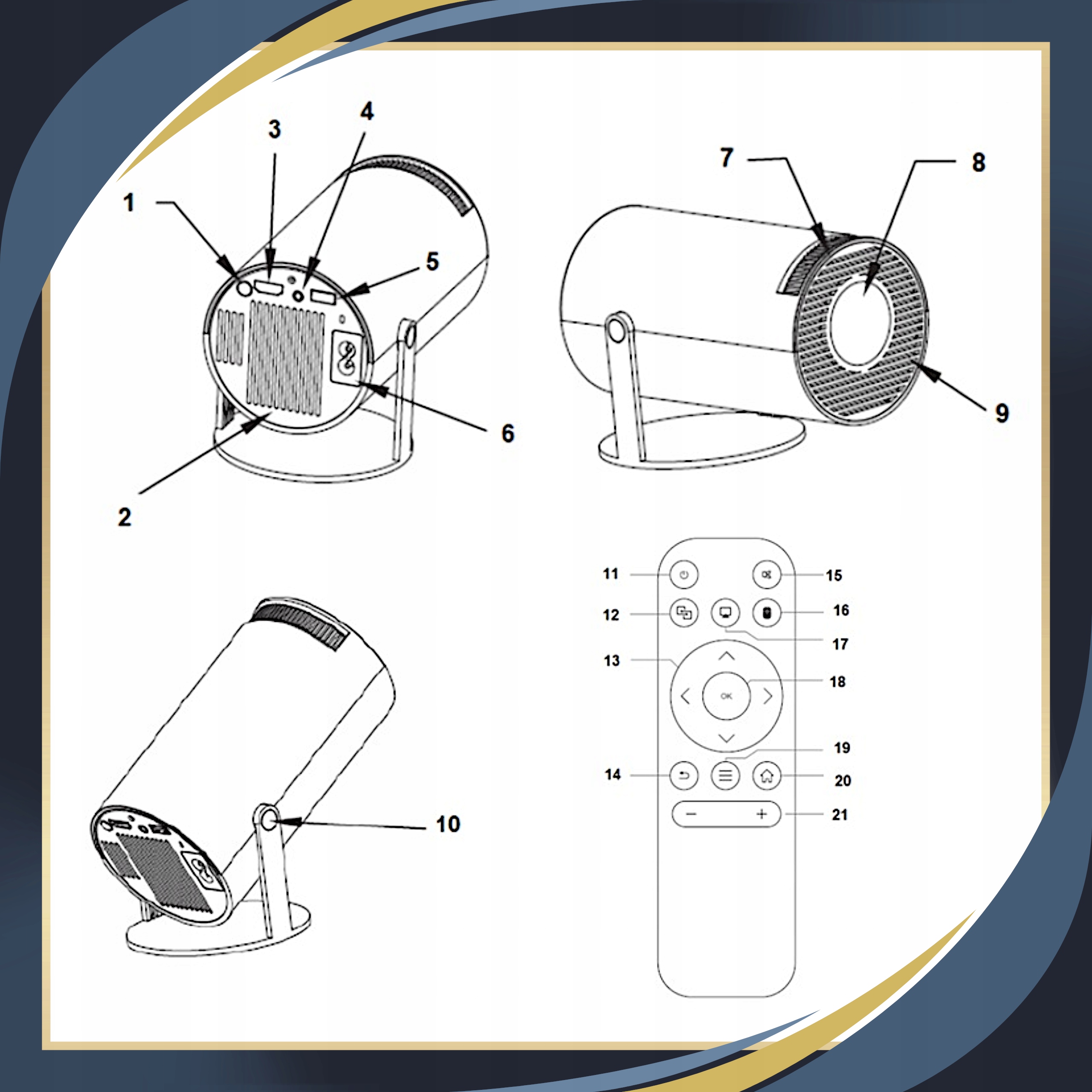 1⃣ просто підключіть проектор до електроенергії і натисніть кнопку живлення внизу пристрою, щоб насолодитися зображенням, готовим до експлуатації в мить ока!
