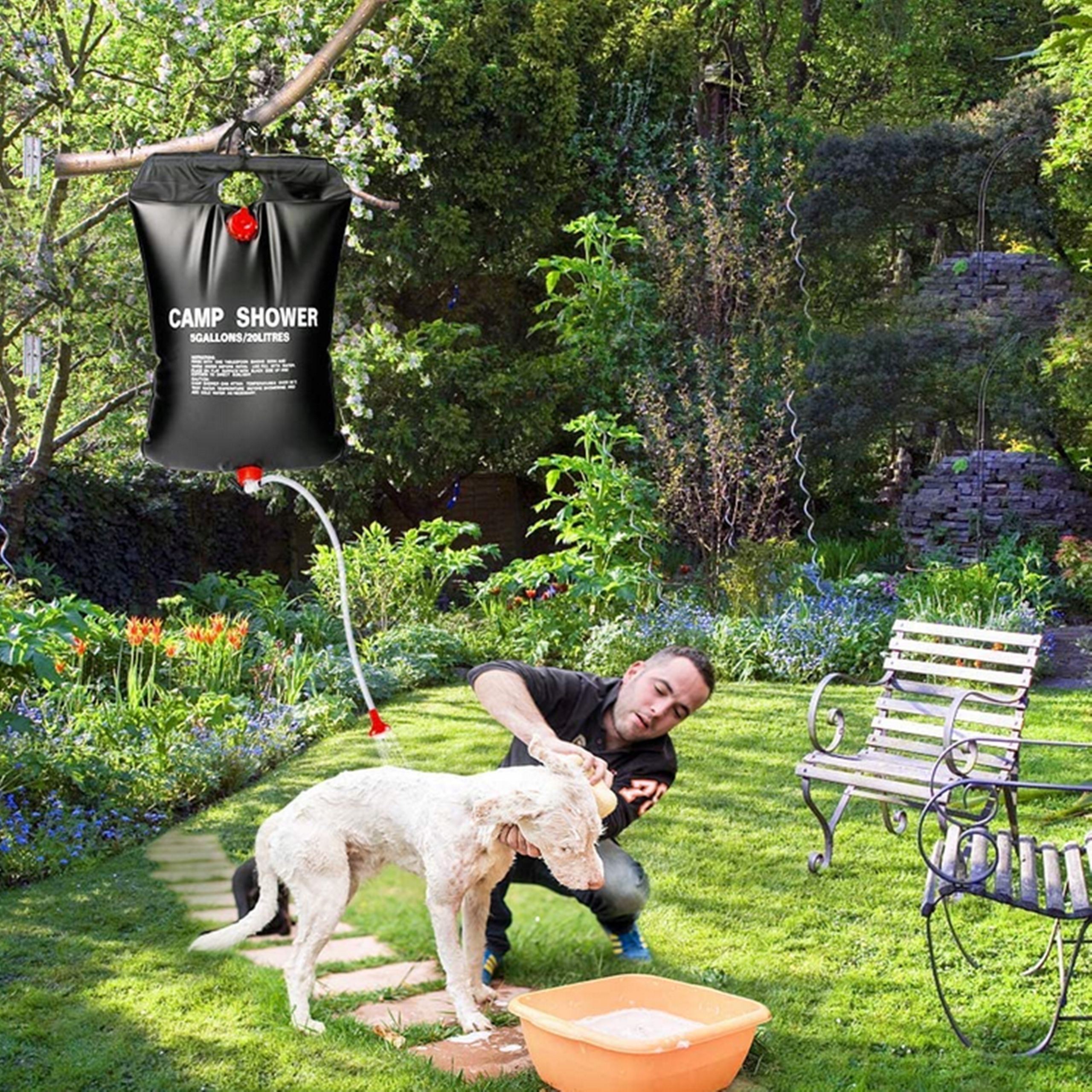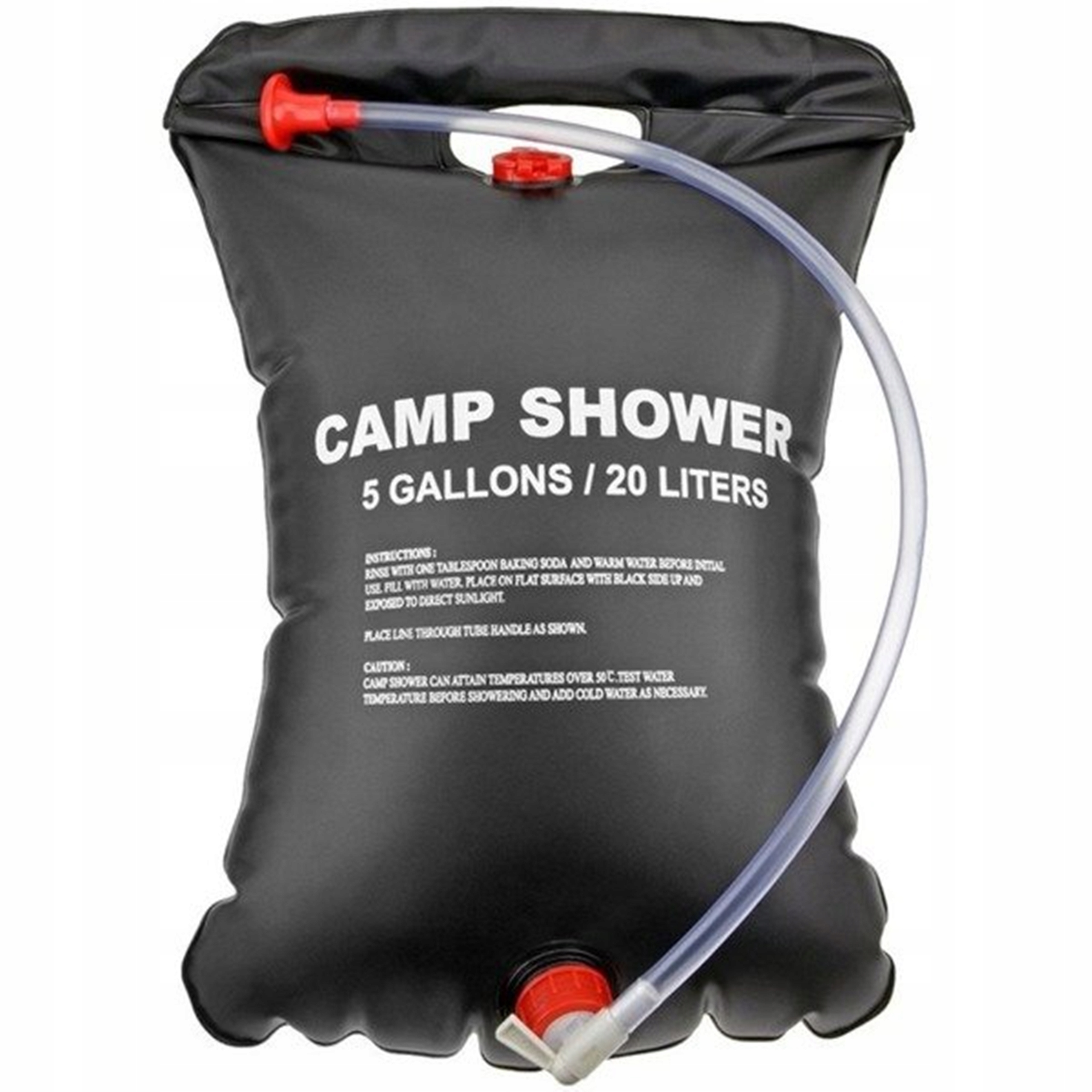 Щоб прийняти душ , просто приєднайте шланг з шапочкою для душу до запобіжного клапана, увімкніть клапан і насолоджуйтеся чарами купання на лоні природи. Ємність мішка для води становить до 20 літрів, що дозволить приймати тривалу та розслаблюючу ванну.