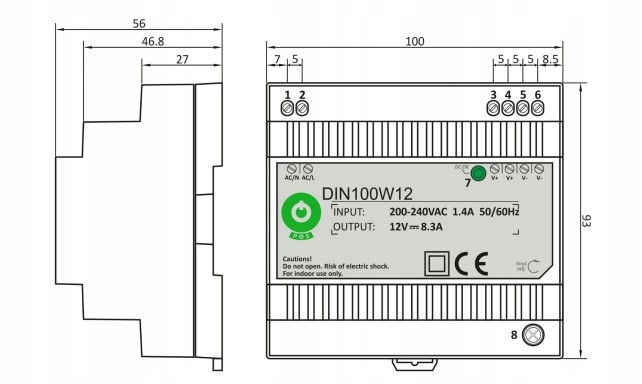 Блок живлення POS® 8.3A 100W 12V IP20 DIN100W12 — це високоякісний блок живлення постійної напруги, розроблений спеціально для забезпечення надійного та стабільного живлення різних типів електронних пристроїв. Цей блок живлення має міцну конструкцію та чудові параметри, що робить його ідеальним рішенням для промислового та комерційного застосування.