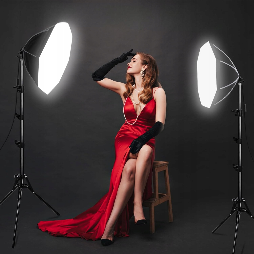 Софтбокс являє собою восьмикутник діаметром 50 см, який імітує ефект сонячного випромінювання, більш природний і рівний. З версією E27 ви можете безпосередньо підключати лампи розжарювання, люмінесцентні лампи або залежні лампи; коробку можна повертати на 210 градусів для отримання оптимального кута освітлення. Пульт дистанційного керування, що входить у комплект, дозволяє легко налаштувати яскравість і колірну температуру освітлення софтбокса.