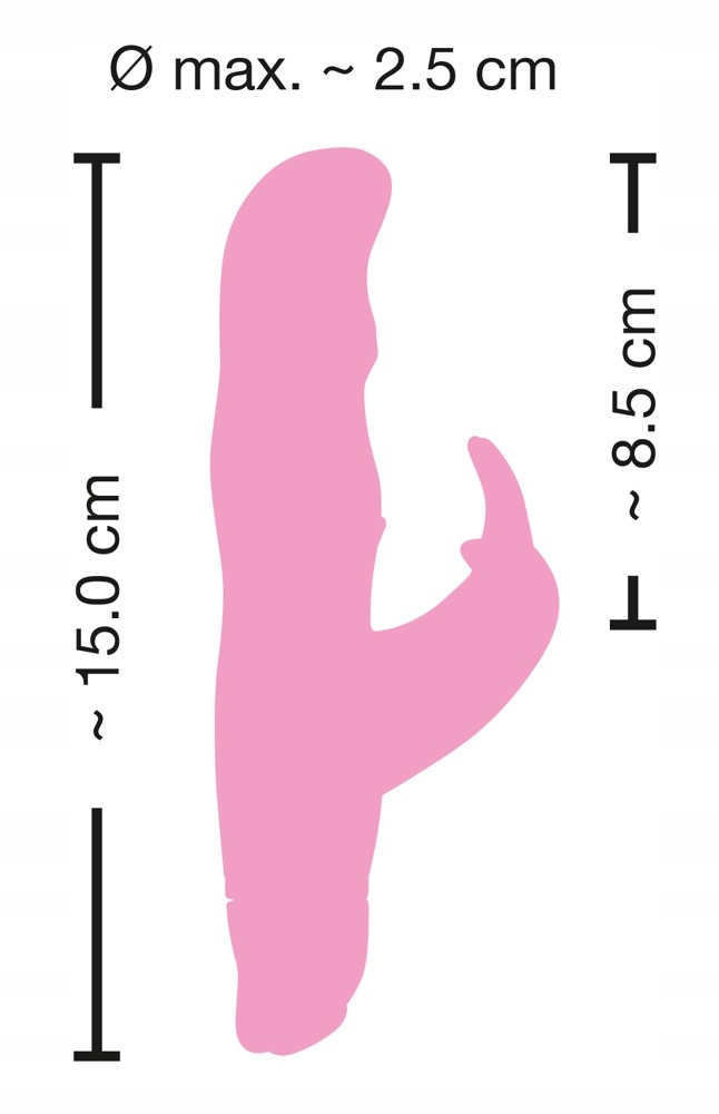 g-rock. Рожевий силіконовий вібратор з двома двигунами. Один в кінці вібратора для масажу всередині, а другий всередині дратівливих вух, призначених для стимуляції клітора. 7 Режими вібрації, керовані однією кнопкою для більшої легкістю. Повний розмір: 15 см. Глибина проникнення: 8,5 см. Діаметр 2,5 див. Матеріал: силікон, вільне від фталатів. Акумулятори повинні бути замовлені окремо: 2 x aaa. Серія: Посмішка