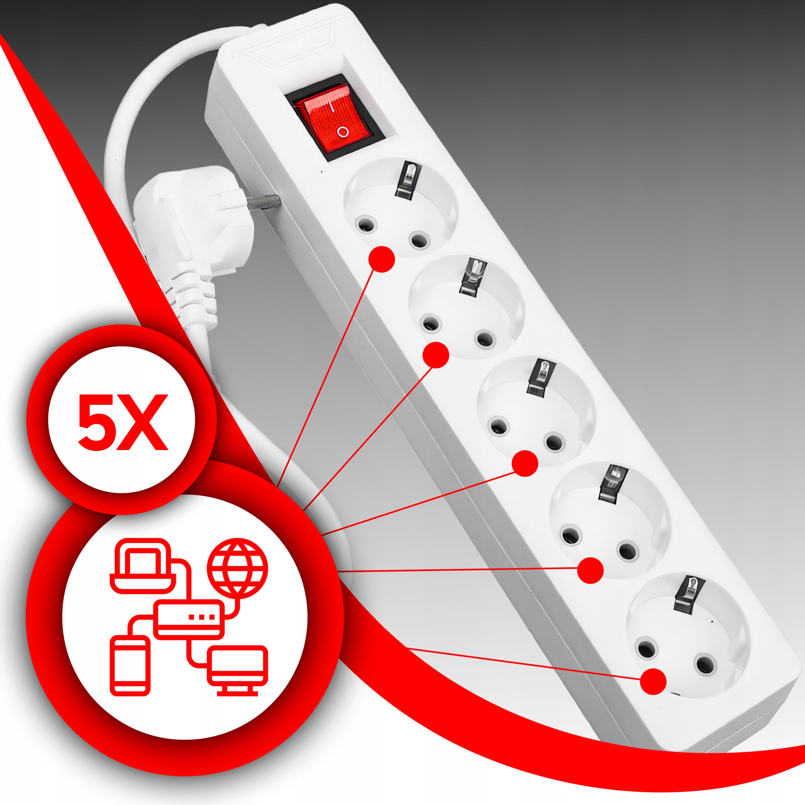 ⭐ 5 розетків - Power Strip пропонує п’ять стандартних розетків, що дозволяє одночасно з'єднати кілька пристроїв , ідеально підходить для дому чи офісу.