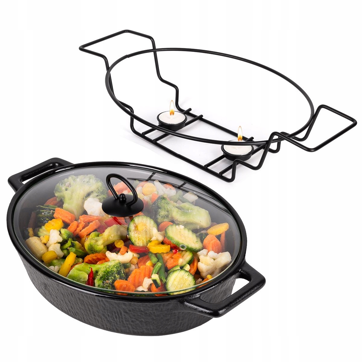 Набір включає стабільний обігрівач (підставка) з двома виділеними місцями на T-Light . Завдяки цьому ви можете безпосередньо подавати їжу в обсмажуванні на столі, тривалий час підтримуючи відповідну температуру . 4 Це зручне рішення, яке економить час і енергію!