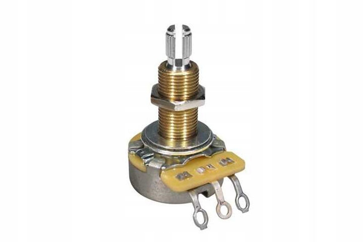 CTS A500K CTS500-A54 - логарифмічний потенціометр, найчастіше використовується як потенціометр гучності в гітарах з хамбакерами (двокотушковими звукознімачами). Це модель з так званою «великою банкою» - діаметром 24 мм. Висота різьби 19 мм. Діаметр різьби 9,5 мм. Діаметр банки 24 мм. Діаметр хвостовика 6,13 мм. Потенціометр має дещо ширшу різьбу та головку штока, ніж часто використовувані потенціометри східного виробництва. Для деяких гітар потрібно трохи розширити отвір для кріплення.CTS є одним із провідних виробників потенціометрів. Цей продукт відноситься до абсолютної першої ліги. У багатьох дорогих фірмових гітарах встановлюються потенціометри CTS. Вони характеризуються високою довговічністю, точністю і дуже малим допуском на відхилення від заданого значення.