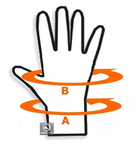 Розміри (згідно з малюнком нижче), A - обхват зап'ястя, B - обхват руки.