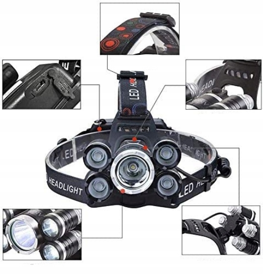- Потужний 5x світлодіодний налобний ліхтар - забезпечує чудове освітлення за будь-яких умов.
