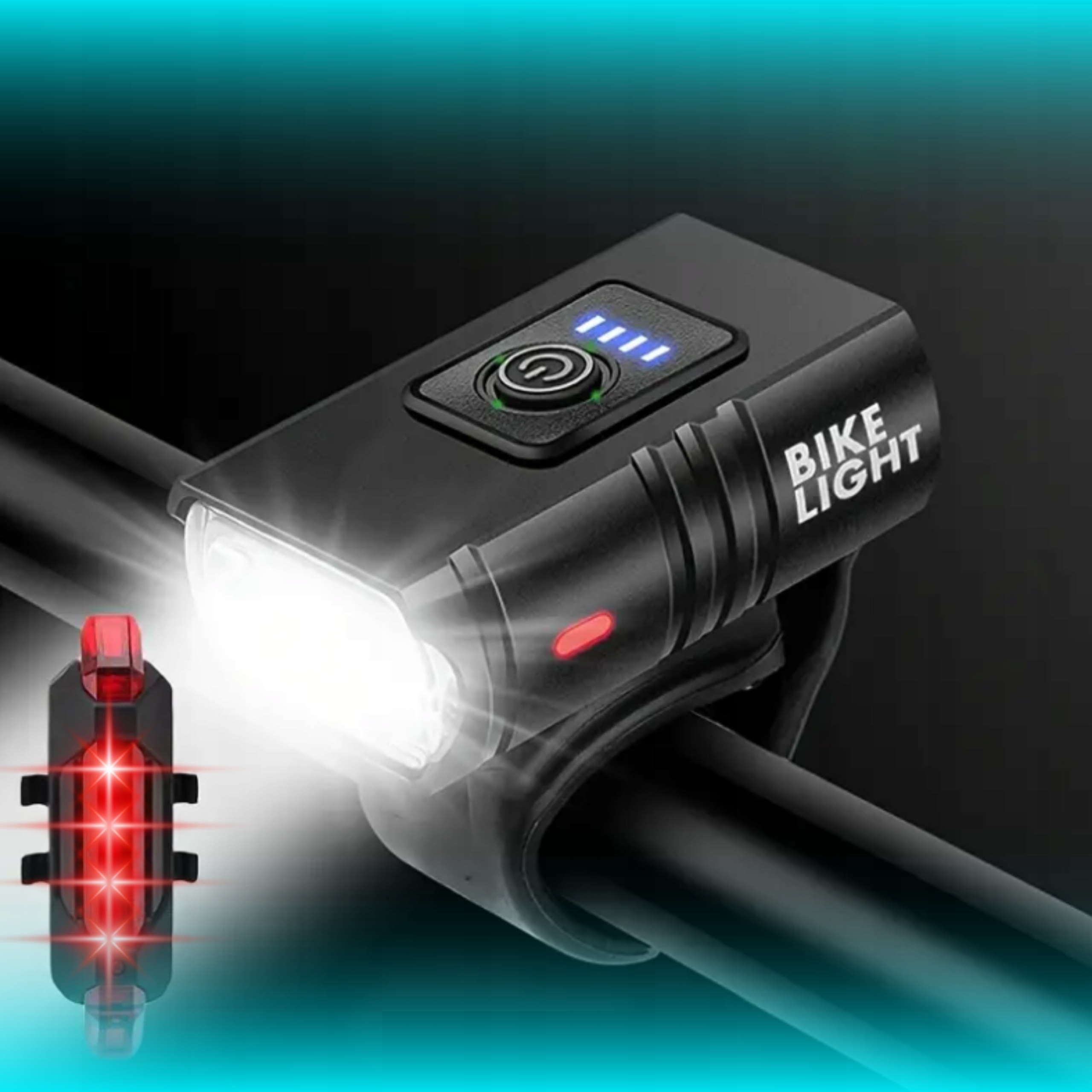 ПОТУЖНА ВЕЛОСИПЕДНА ЛАМПА ПЕРЕДНЯ ЗАДНЯ СВІТЛОДІОДНА ВОДОСТІЙКА КОМПЛЕКТ АКУМУЛЯТОРІВ USB