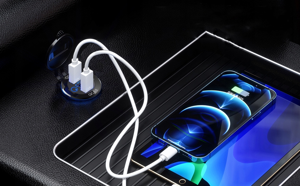 ПОТУЖНИЙ АВТОМОБІЛЬНИЙ ЗАРЯДНИЙ ПРИСТРІЙ USB ТИПУ C МОНТАЖНА РОЗЕТКА 2X QC 3.0 + PD