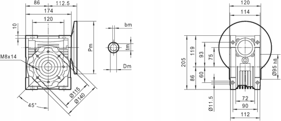 Призначений для зменшення приводу електродвигунів MS 71 з монтажним фланцем (B5) і приводним валом Φ14 мм.
