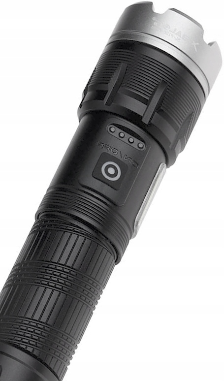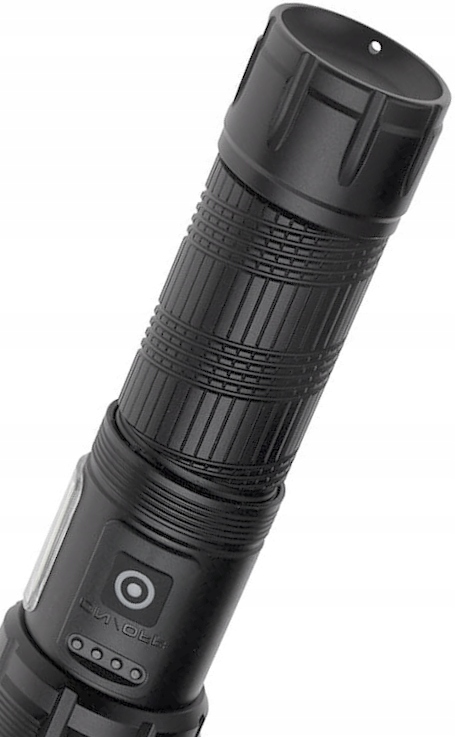 Перемикач ліхтарика має маленькі інформаційні діоди, які показують чотирирівневий рівень заряду акумулятора.