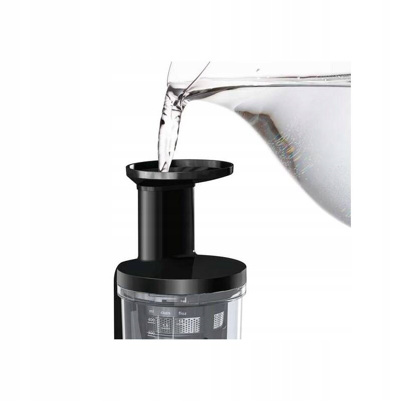 Завдяки обертальному руху силіконових скребків сік можна ідеально перемішати всередині пристрою, а потім перелити його вміст у склянку.