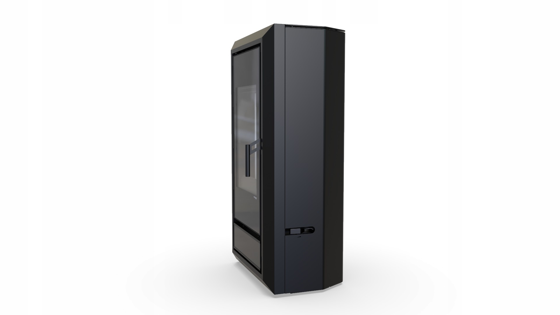 Сучасна форма і вертикальне скло дверцят гарантують користувачам гарне бачення вогню.