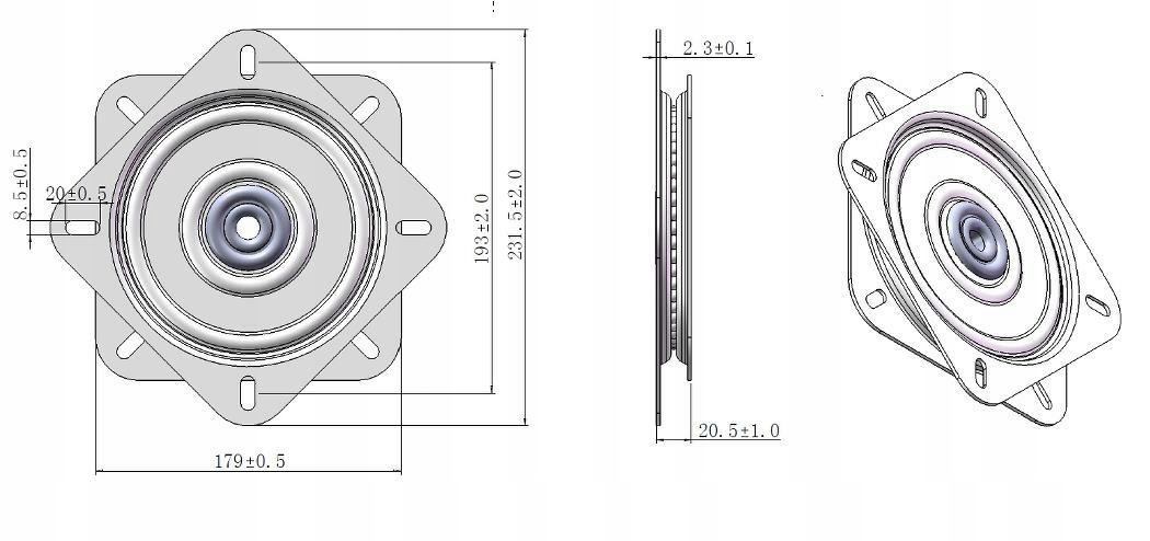 Поворотний столик металевий 179х179мм подвійний, 200кг