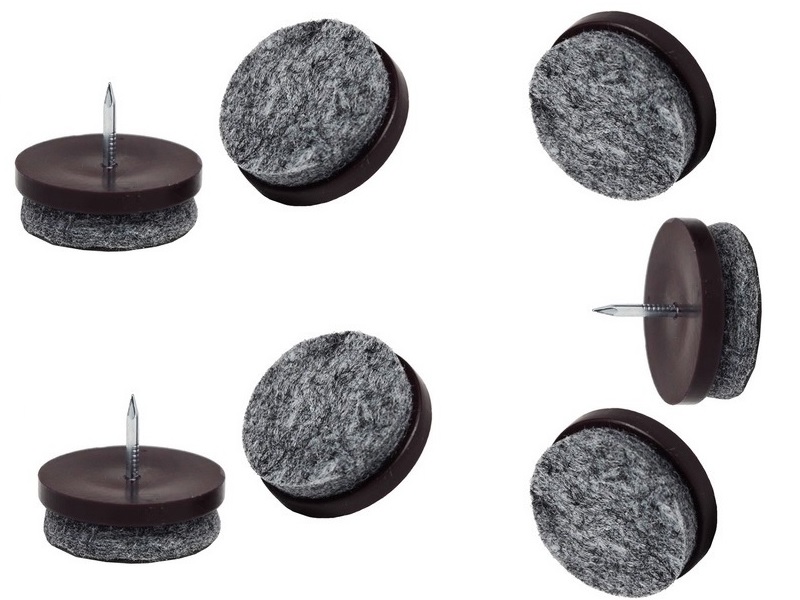 Повстяні подушечки забиті під круглі меблі діаметром 24 мм, цвяхова накладка з пластику коричневого кольору. Меблевий фетр відмінно захищає поверхню підлоги від подряпин. Повсть кріпиться на меблі, шафи, стільці, столи, лави, тумбочки... Товстий компактний фетр відповідної щільності. Ми продаємо велику кількість прокладок - рекомендуємо цей продукт.