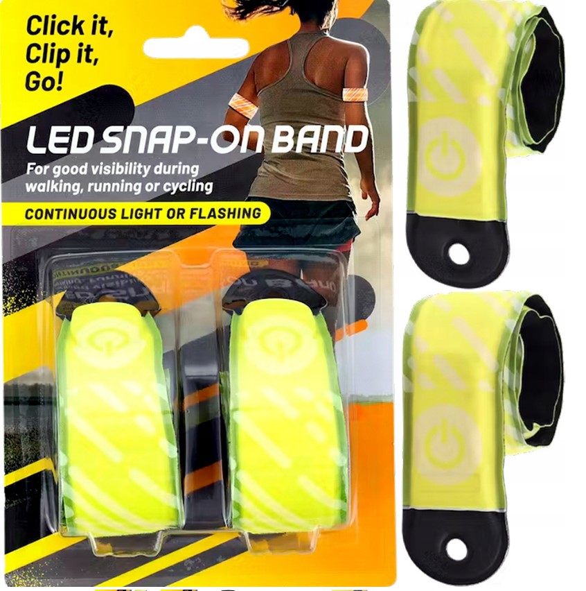 Пов'язка самозажимна жовта світловідбиваюча для бігу 2 шт. LED