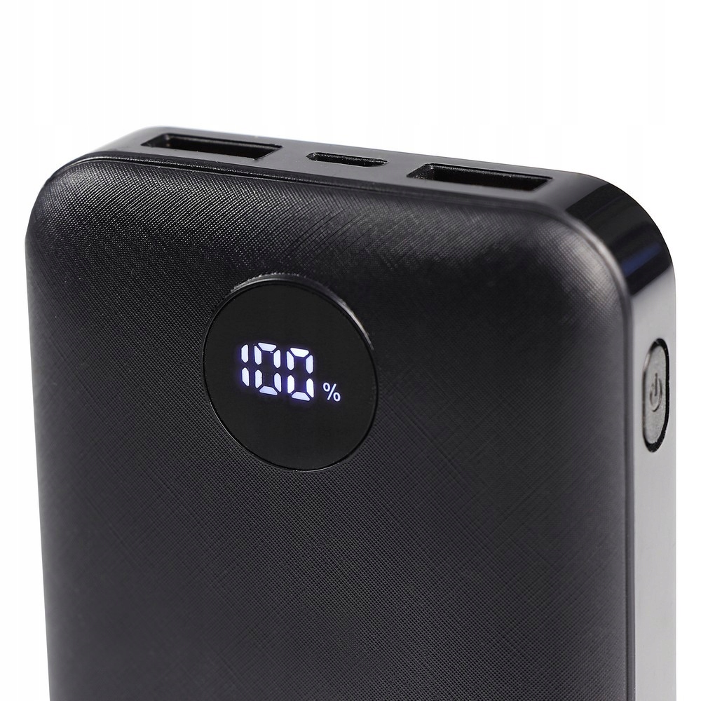 Power bank Air Gifts 10000 мАг, кишеньковий розмір, цифровий дисплей рівня заряду, входи 5 В/2 А: USB Type C і micro USB, 2 USB-виходи (макс. 5 В/2 A) для одночасного заряджання двох пристроїв, кабель USB Type-C і фетровий чохол із карабінами