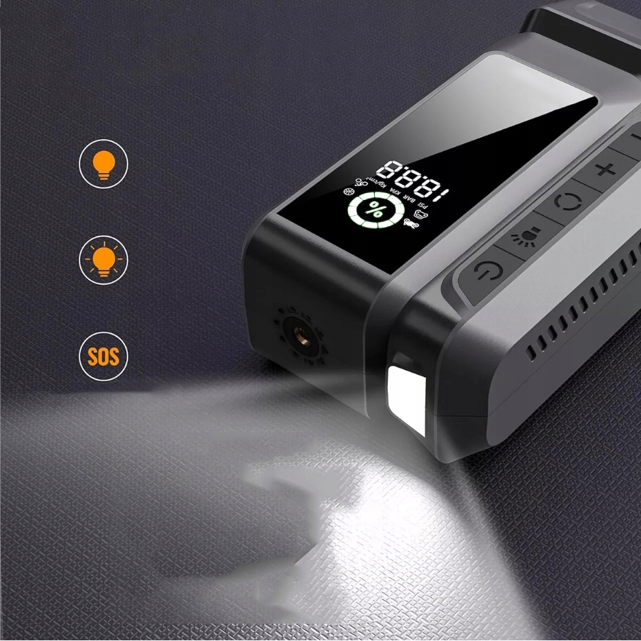 - обладнаний сильним автомобільним закваскою 4500A та повітряним компресором 160 фунтів на квадратний дюйм, гарантує, що ви можете запустити машину і надути шини в блиманні ока. Разом. Ви можете вибрати 3 режими: режим суцільного світла, режим соусу та режим стробу. електронний.