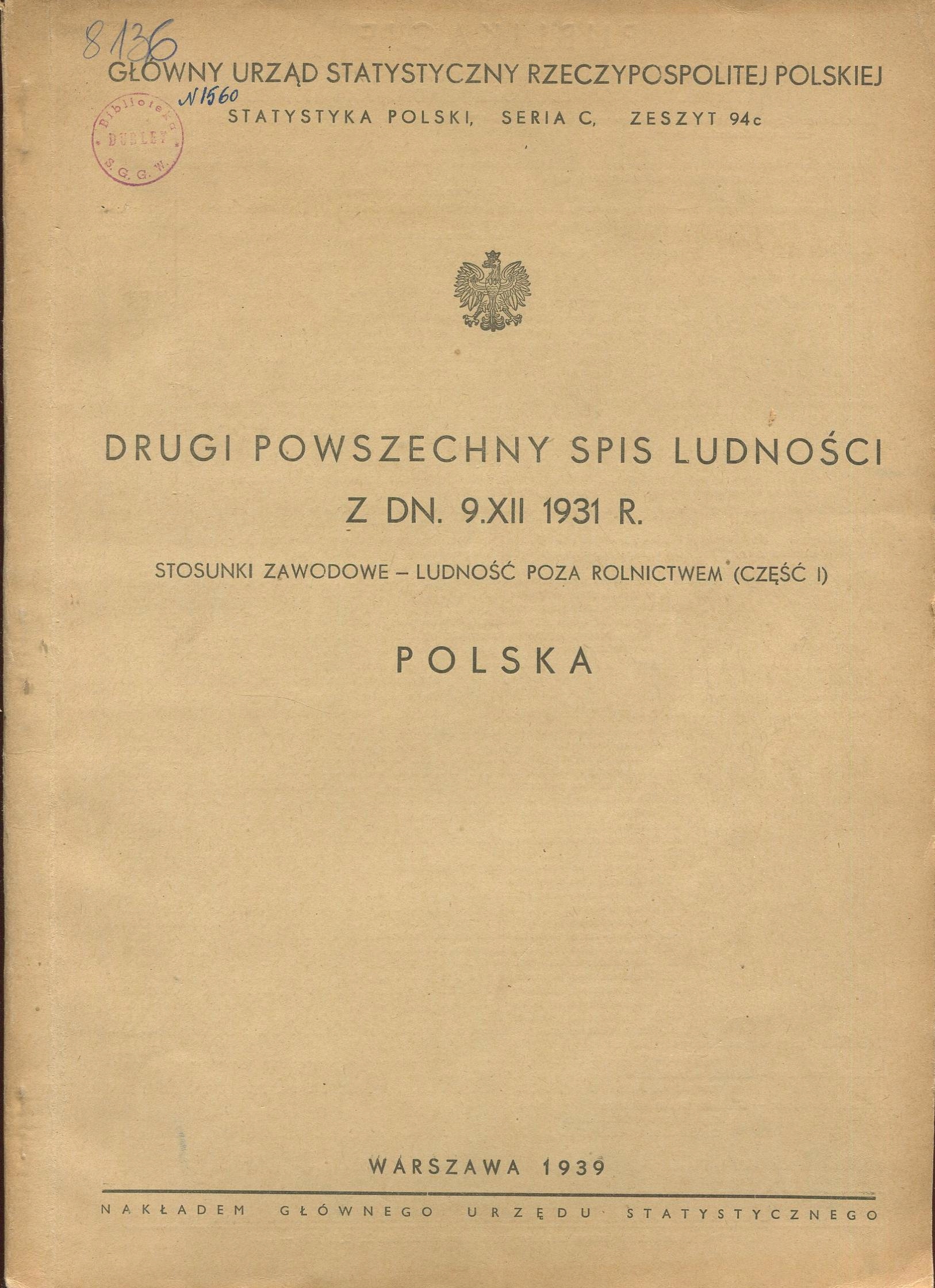 ДРУГИЙ Загальний перепис населення р 12.09.1931 ТОРГОВІ ВІДНОСИНИ - НАСЕЛЕННЯ ПОЗА СІЛЬСЬКИМ ГОСПОДАРСТВОМ (ЧАСТИНА І). ПОЛЬЩА