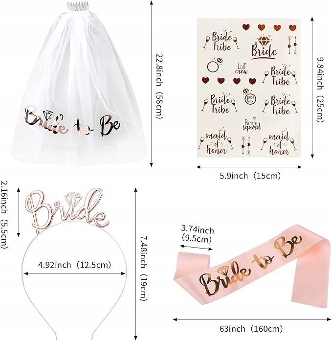 Пояс і пов’язка для майбутньої нареченої, татуювання, фата JGA рожеве золото