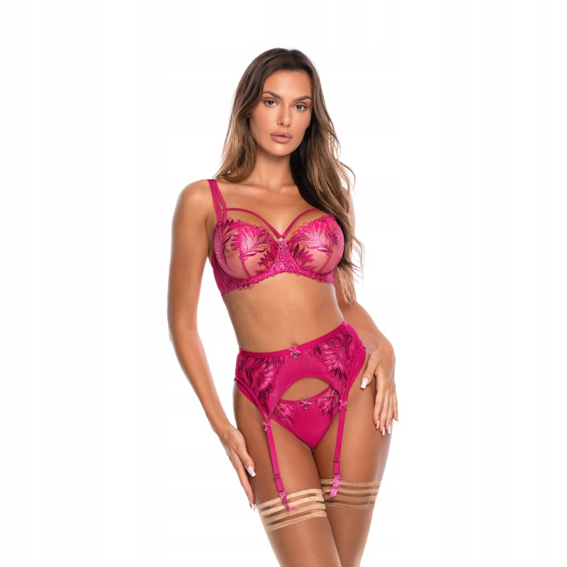 Красивий, багато декорований пояс для підв’язок яскравого кольору фуксії — це аксесуар, який не може бути відсутнім у комплекті з бюстгальтером V-10251 і стрінгами V-10258. Зачаруйте та запаліть свої почуття, вибравши цей блискучий предмет нижньої білизни, і він подарує вам несподівані враження для двох! Передня частина пояса виконана з вишивки на тюлевій підкладці, оснащена підтяжками, застібається на двобортний гачок і люверс з регульованою довжиною.
