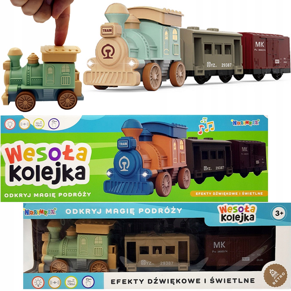 Введіть дитину в магічний світ черг з нашим веселим одягом. Ciuchcia з приводом , двома знімними вагонами , а функція світло та звук забезпечують незабутнє враження під час гри.