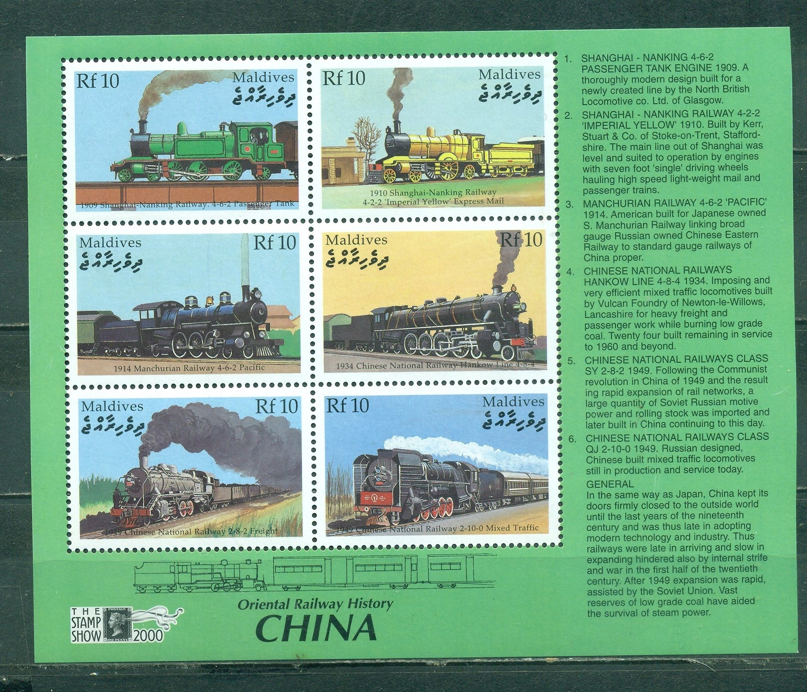 Поїзди. Локомотиви. Реп. Мальдіви. Mi bl. ** Китай