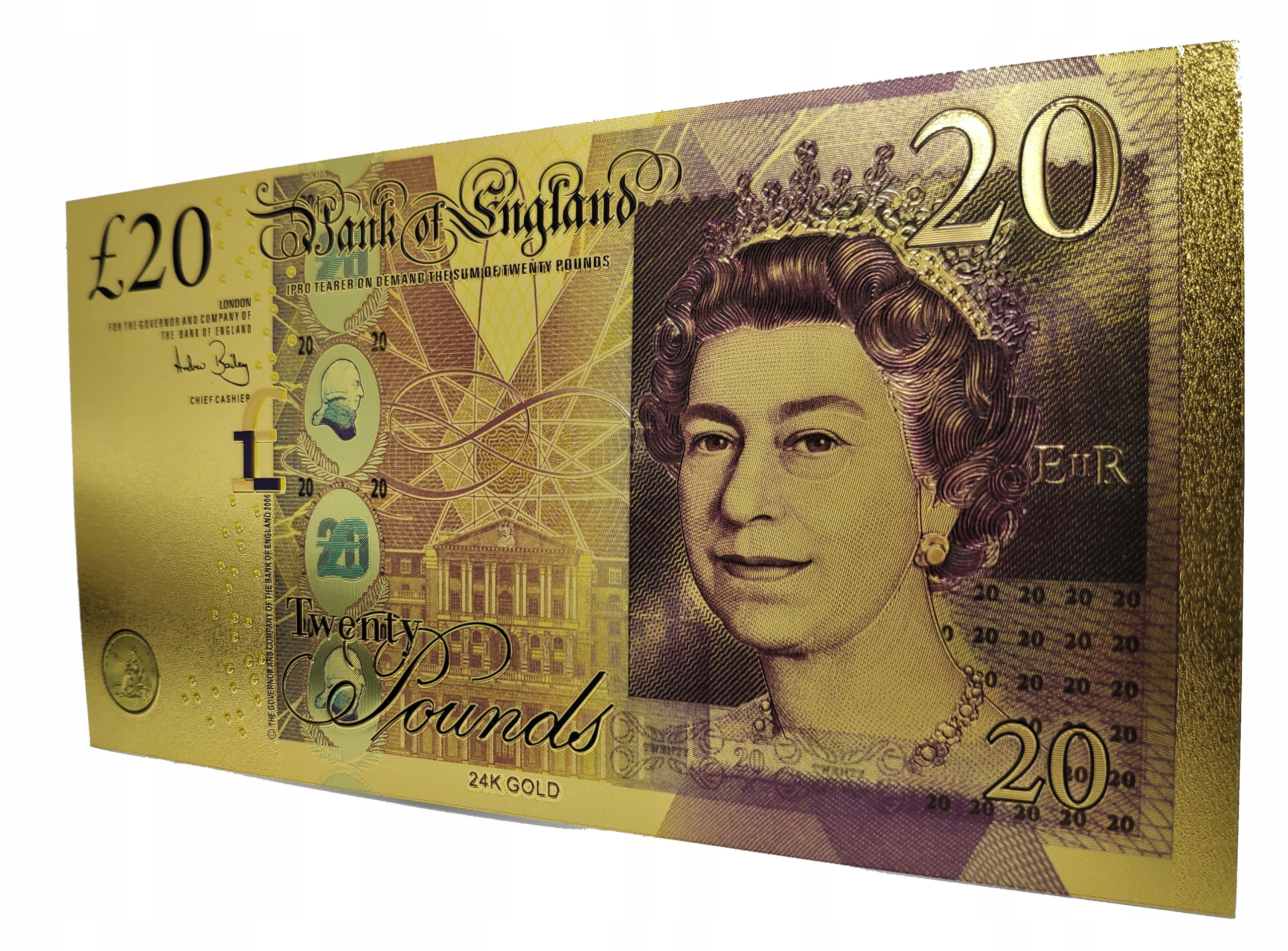 Позолочена банкнота королеви Єлизавети II номіналом 20 фунтів