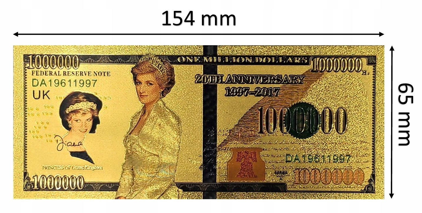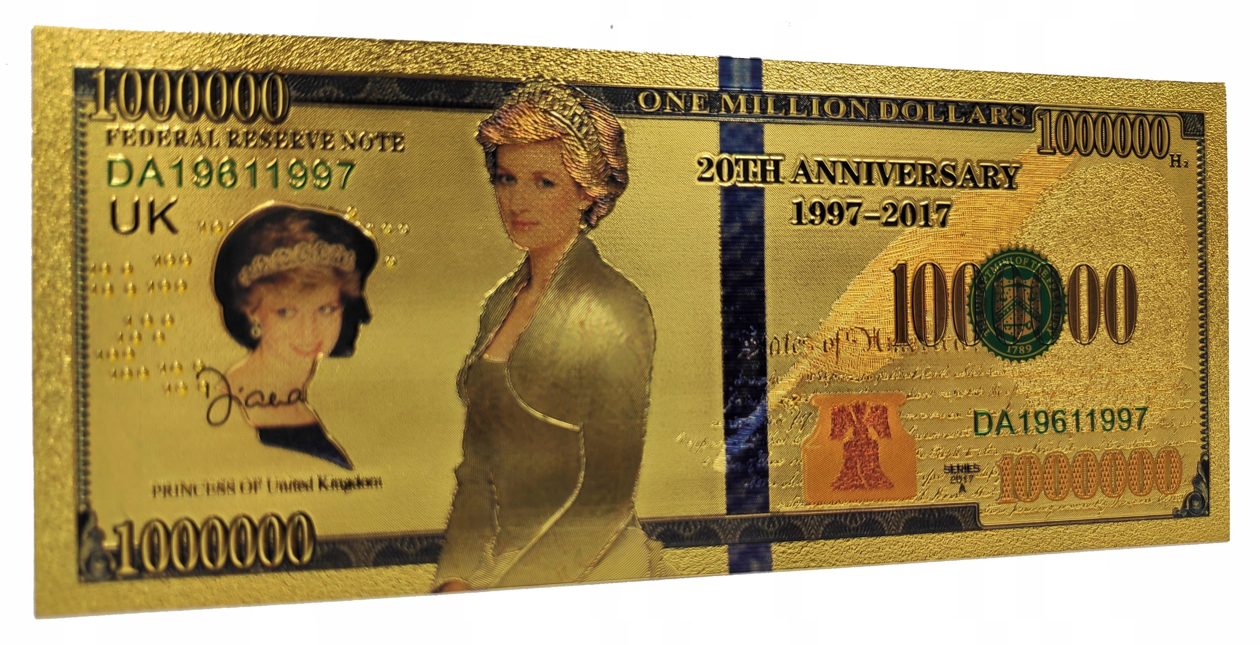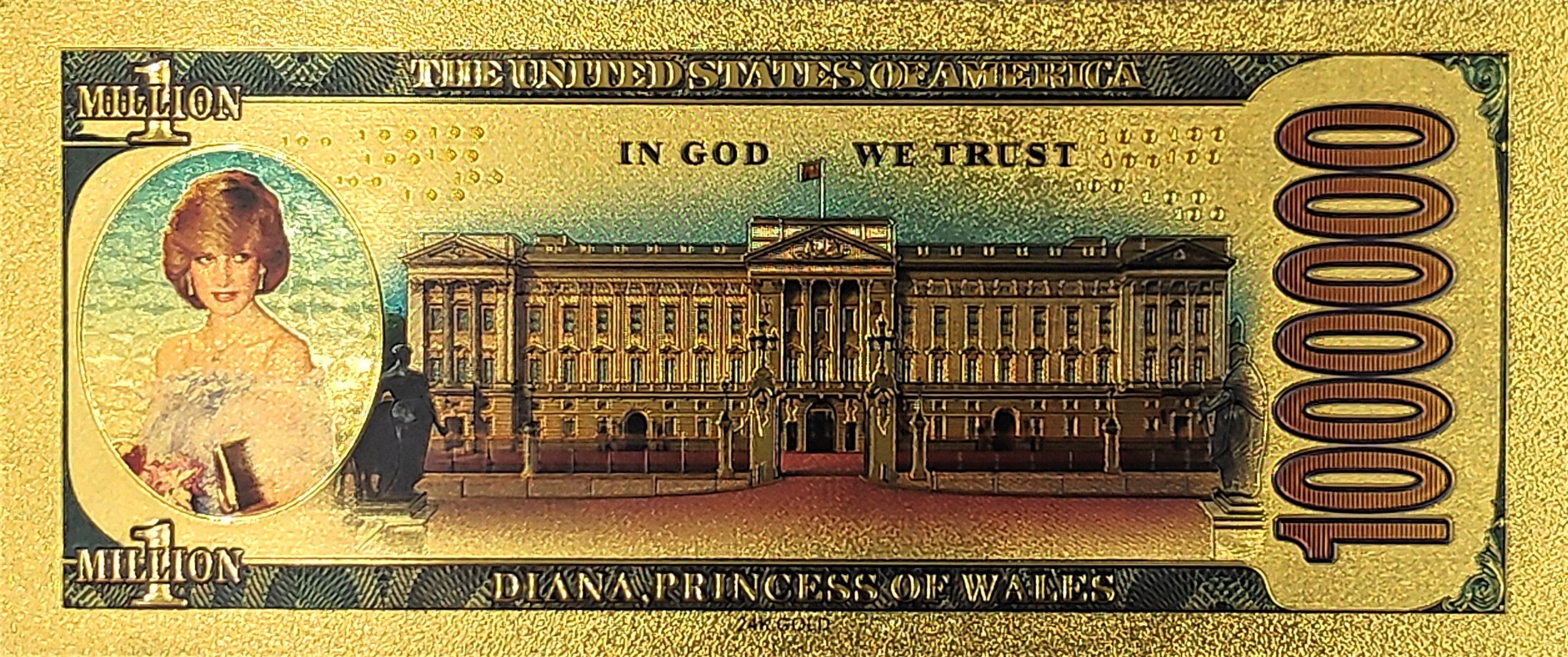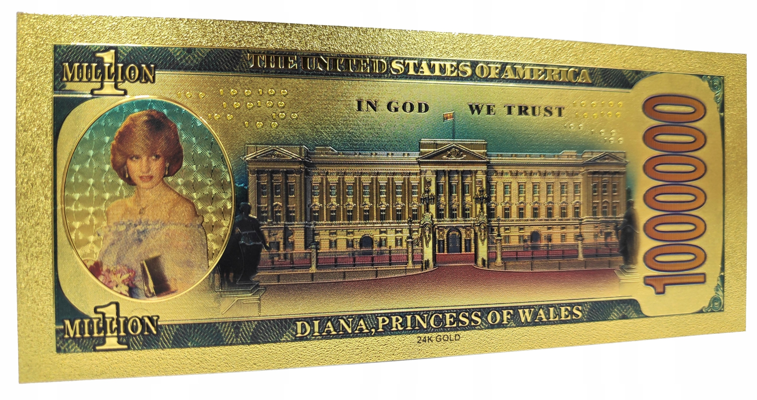 ПОЗОЛОЧЕНА БАНКНОТА 1000 000 ДОЛАРІВ ДІАНА СПЕНСЕР