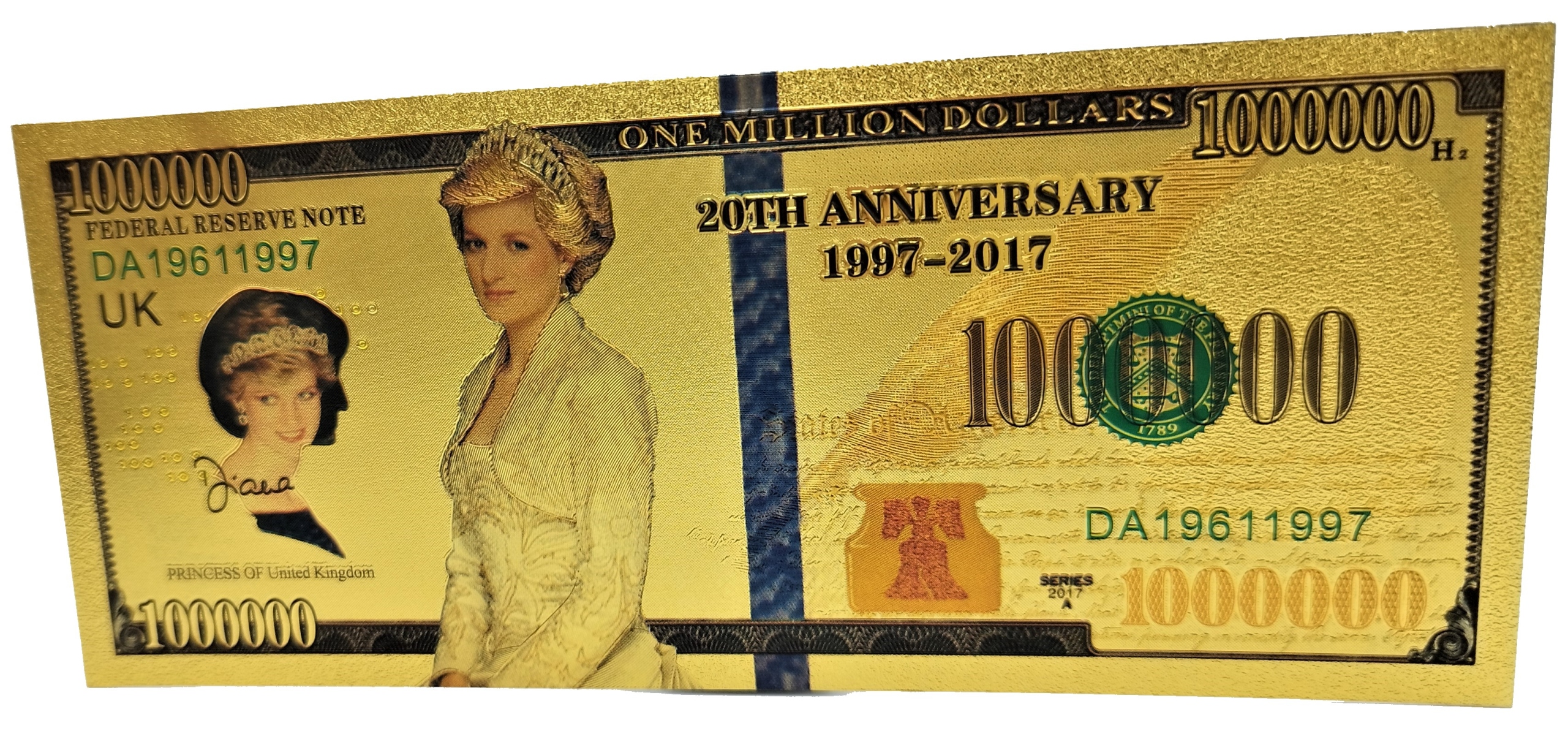 Позолочена банкнота принцеси Діани номіналом 1000 000 доларів