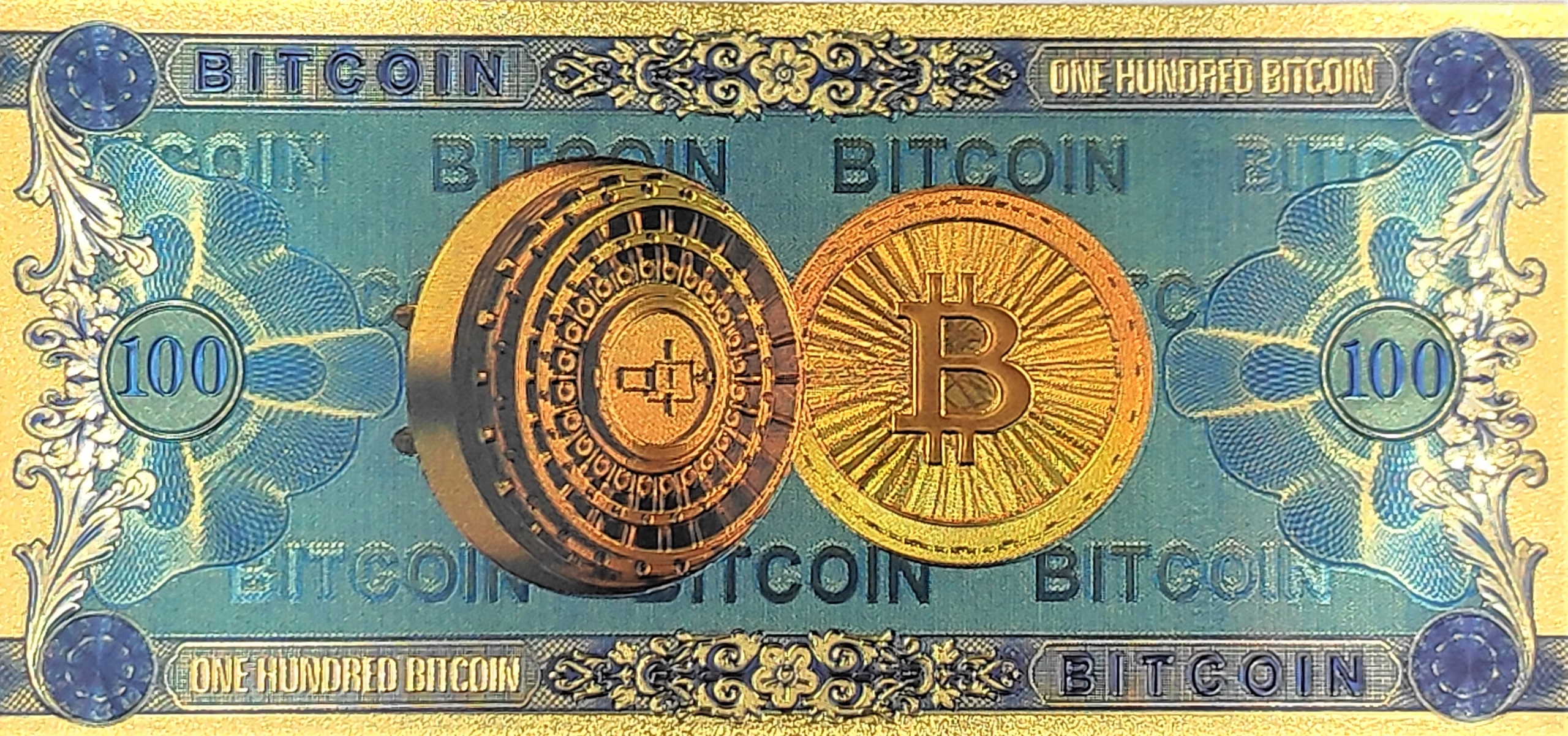 Позолочена колекційна банкнота номіналом 100 біткойн