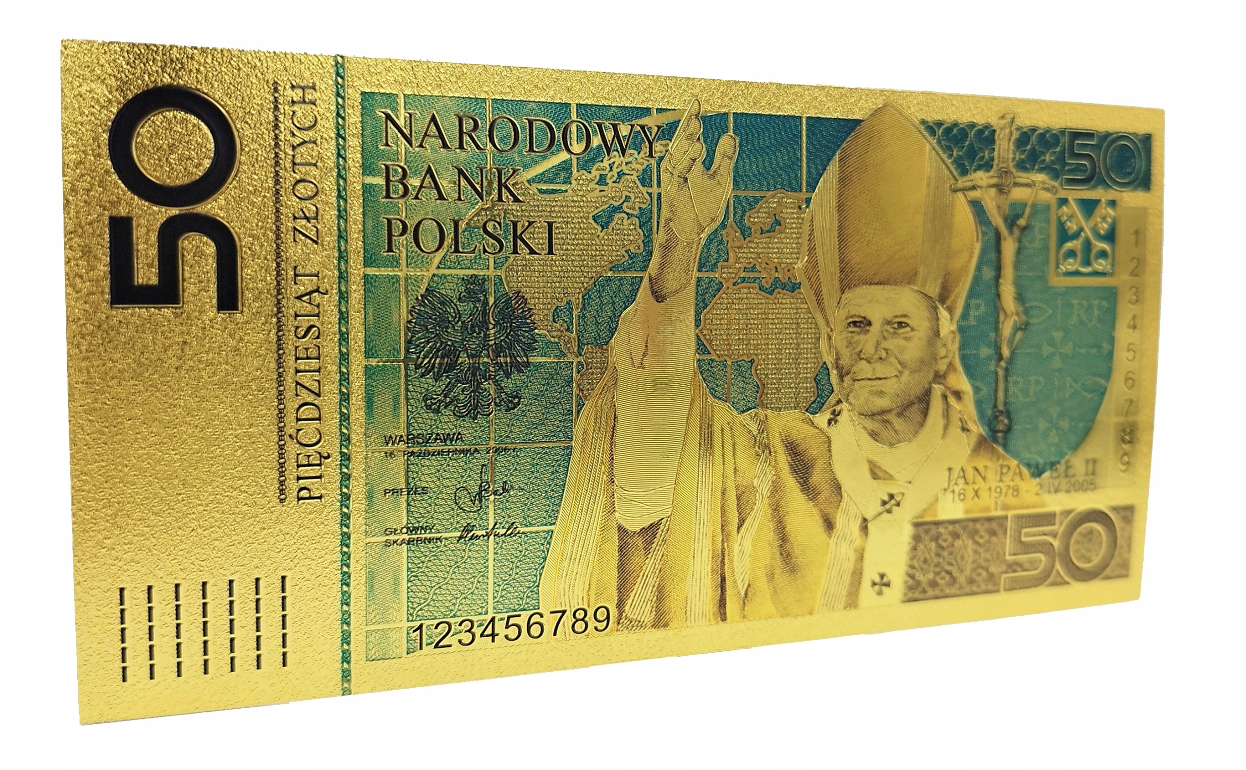 Позолочена колекційна банкнота номіналом 50 злотих Івана Павла ІІ