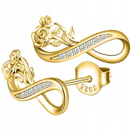 ЗОЛОТЕНІ СЕРЕЖКИ INFINITY, ТРОЯНДИ, гвоздики, СРІБЛО 925