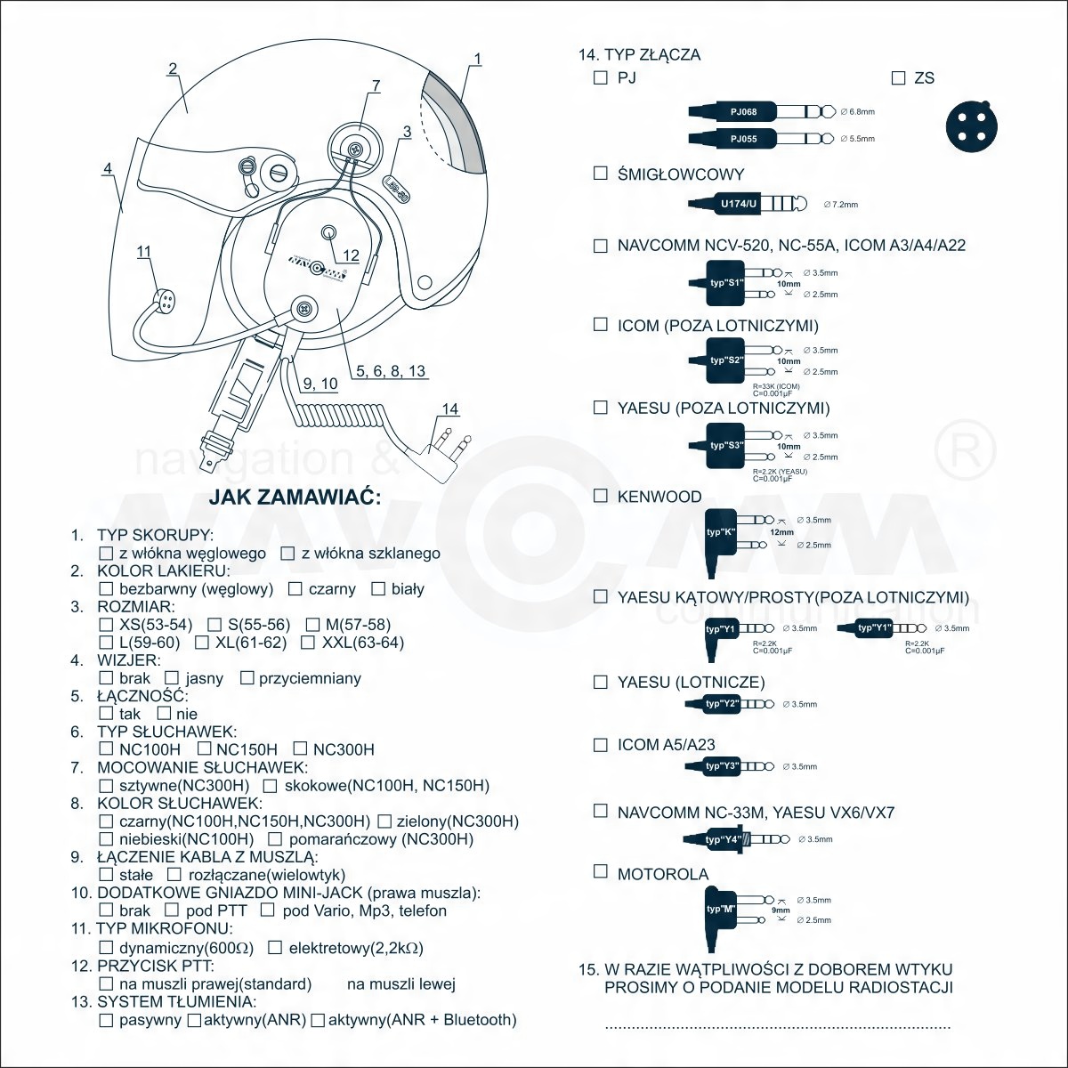 Шоломи NavComm серії NavGlide розроблені та виготовлені відповідно до вимог польського та європейського стандарту PN-EN 966 2000//A1/2002//Ap1/2004//A2/2006 «Шоломи». для повітряних видів спорту», що підтверджено сертифікатом оцінки типу ЄС № WE/15/002/07, виданим Інститутом автомобільного транспорту (нотифікований орган № 1582).