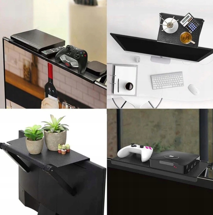 Полиця, яка розміщується на комп'ютері або моніторі телевізора, має вантажопідйомність до 2 кг, тому ми можемо легко зберігати більшість найнеобхідніших речей, які нам знадобляться під час роботи за комп'ютером.