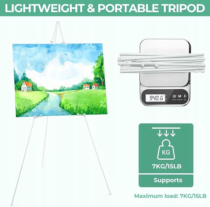 - З регульованою висотою до 160 см ця підставка ідеально підходить для художників, художніх картин, весільних мольбертів або комерційних рекламних тримачів.