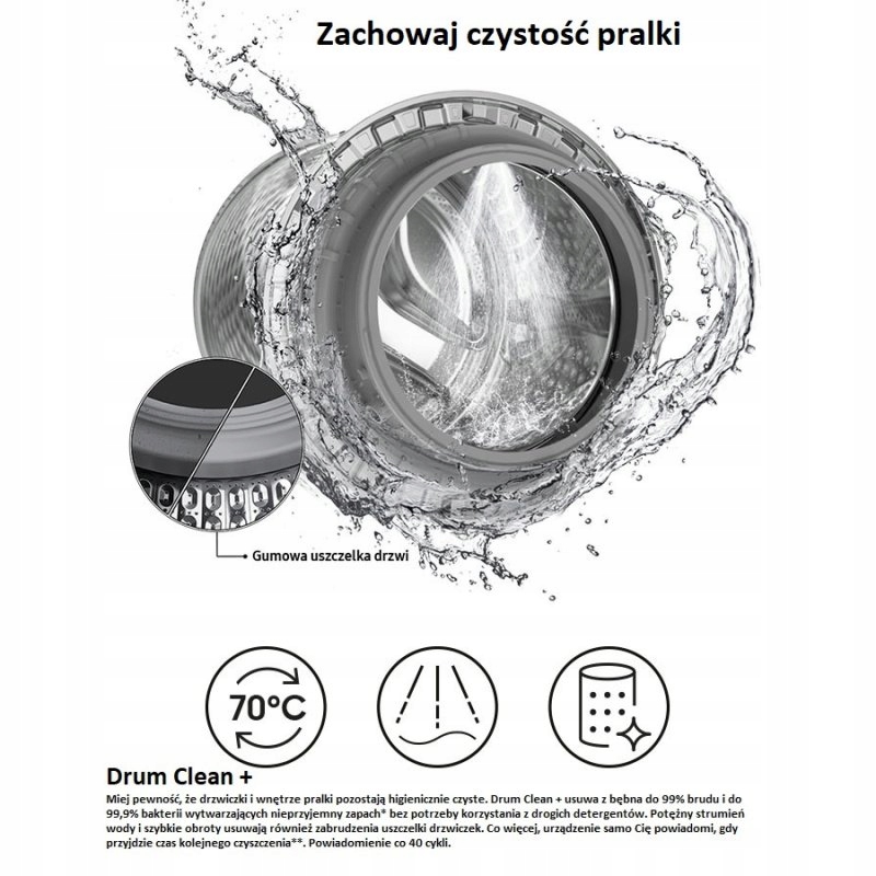 - Гігієнічна пара - гігієнічно чиста робота завдяки зменшенню вібрацій навіть на високих швидкостях Foam> Foam of of Active of Active of Foam> Foome>, що стосується активності, активних фон> і двері пральної машини без необхідності миючих засобів
