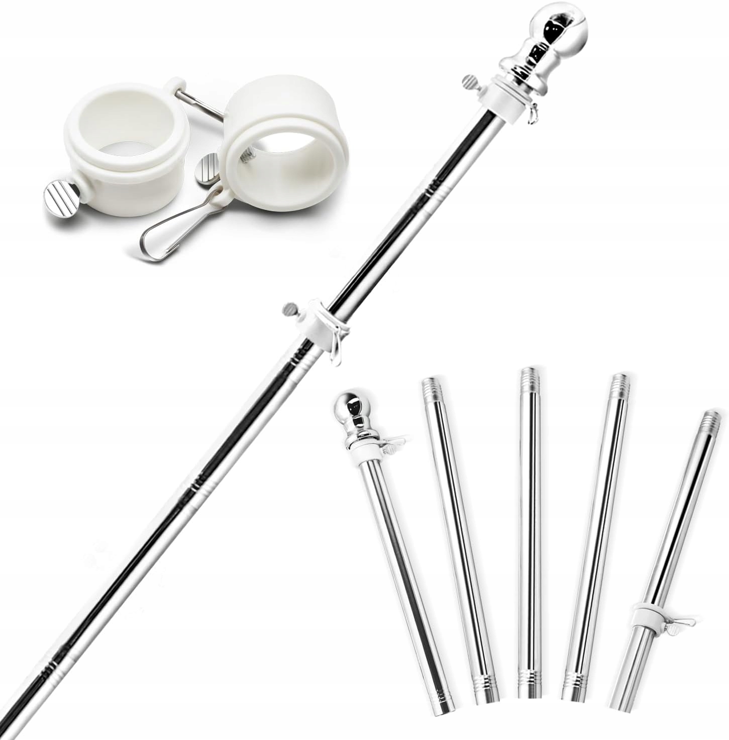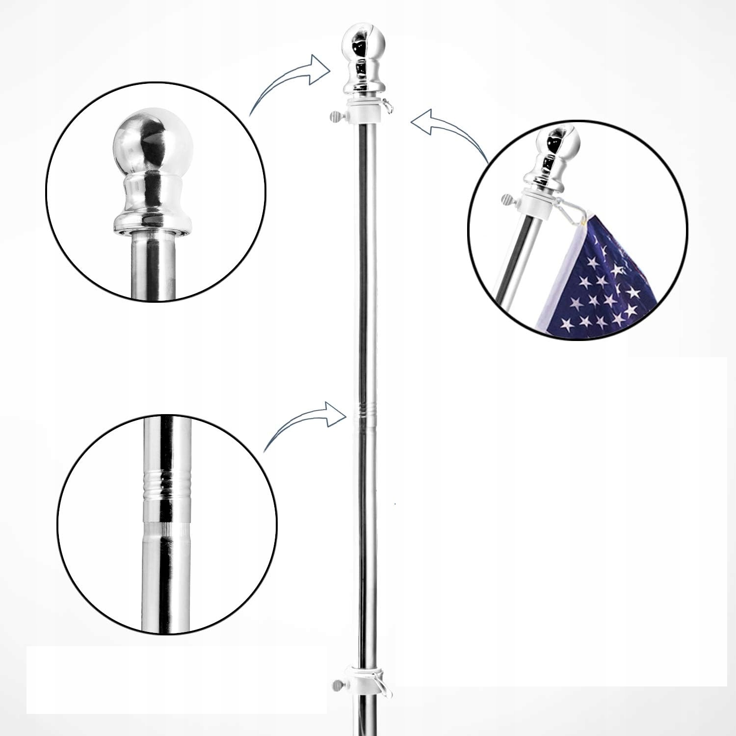 Набір містить 5 секцій стовпів з нержавіючої сталі, що дозволяє регулювати довжину від 1,2 до 6 футів. Не турбуйтеся про різні розміри прапорів – наш флагшток адаптується до ваших потреб!