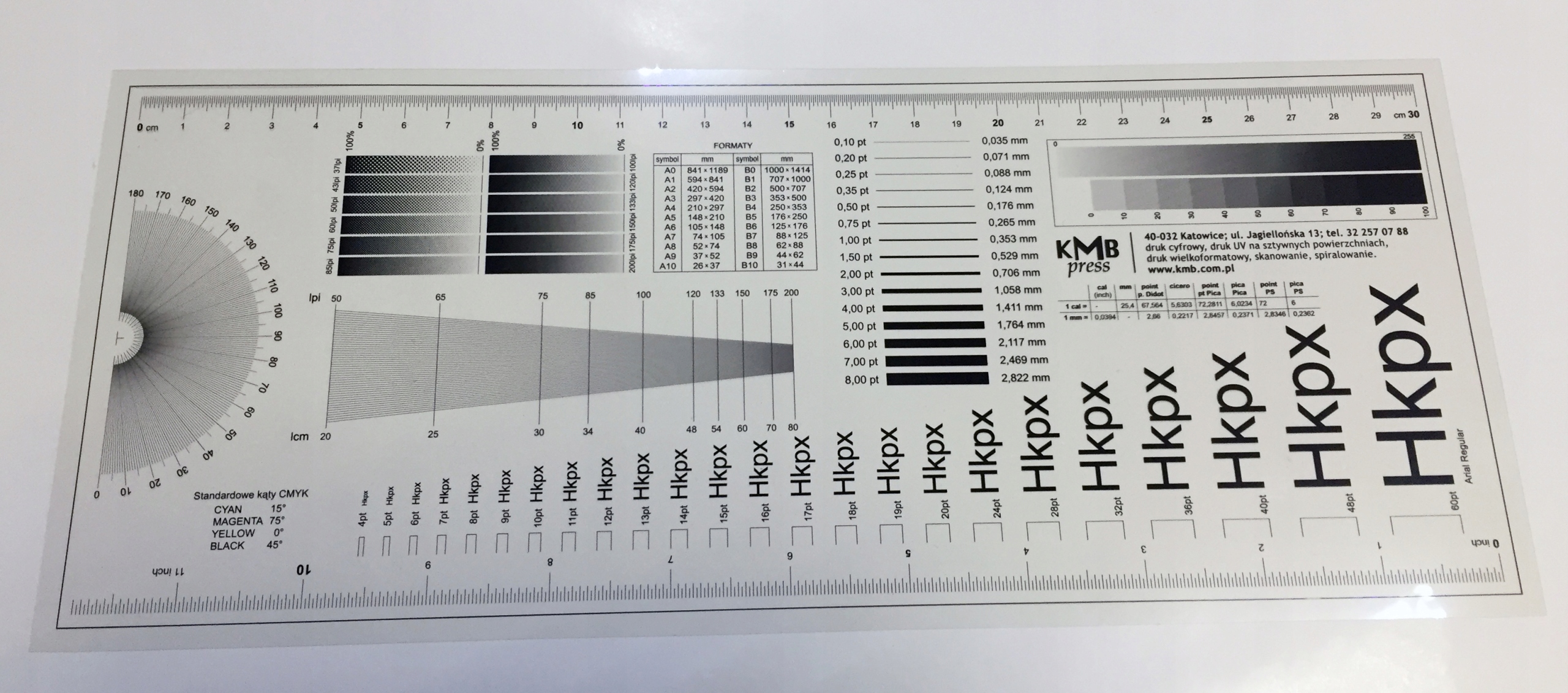 Лінійка зроблено з плівки для друку, експонованої на висококласному фотонабірному пристрої Heidelberg Signasetter PRO