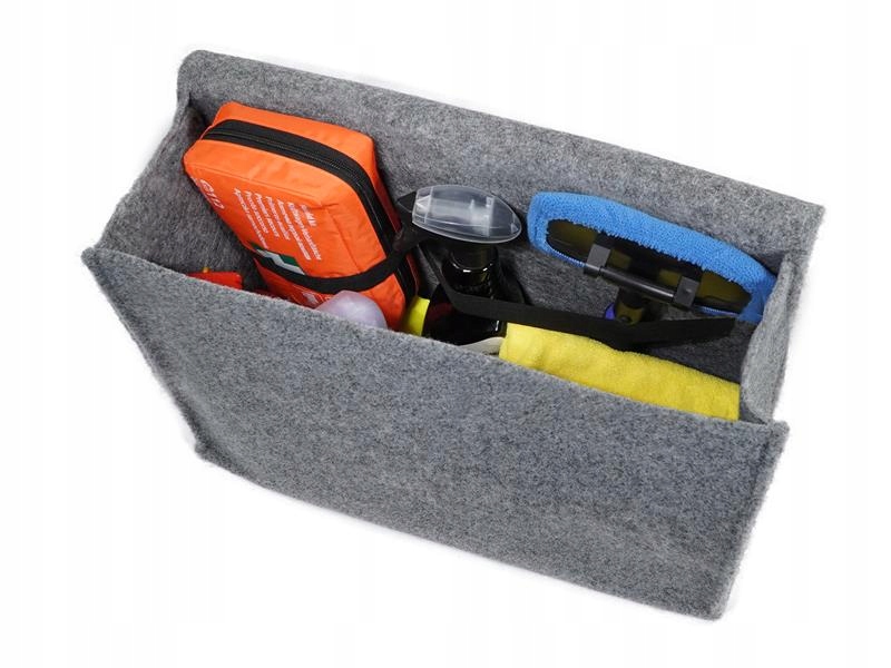 Практична автомобільна сумка для зберігання необхідних аксесуарів під час подорожі, які не поміщаються в традиційне відділення. На задній і нижній стінках сумки є липучки для стабілізації сумки та запобігання її переміщенню. Сумка має ручку, що полегшує її перенесення.