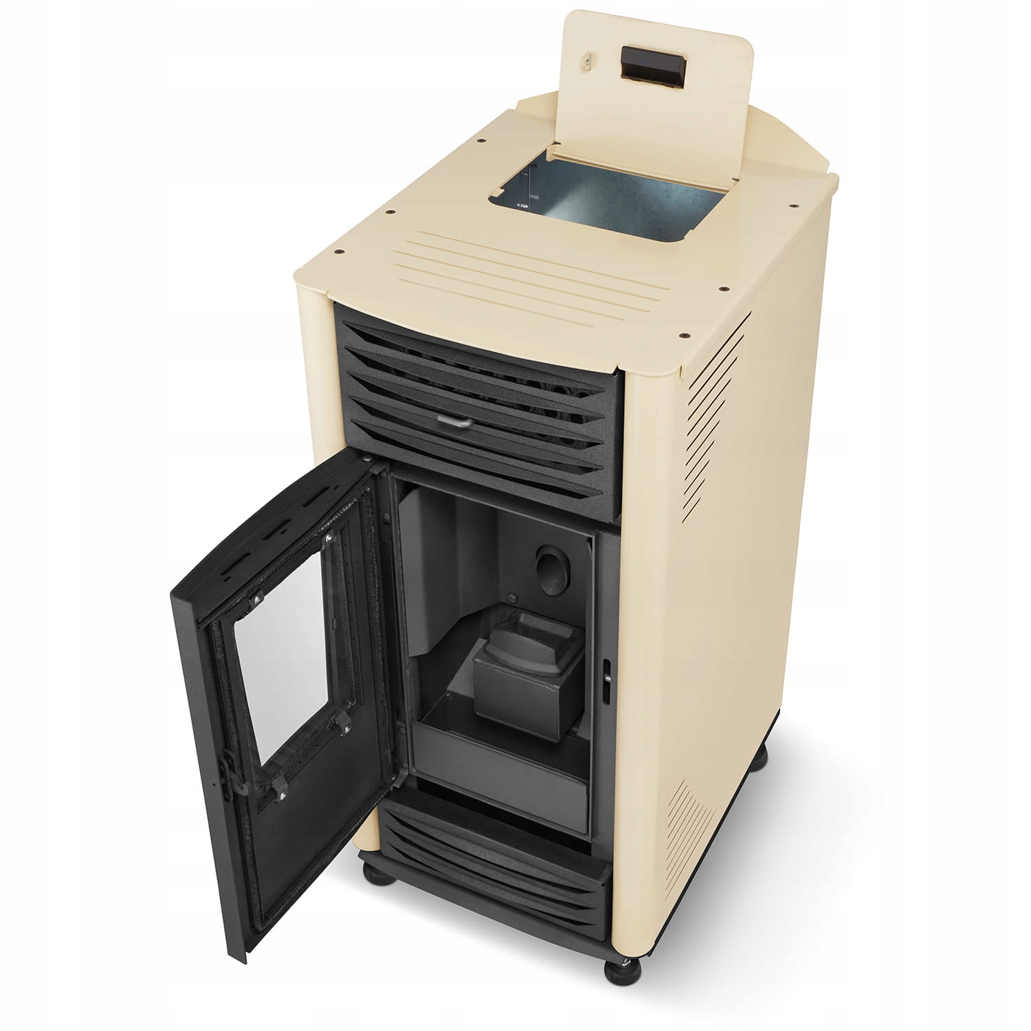 - Конструкція печі забезпечує вільний доступ для легкого очищення та видалення золи, якої дуже мало залишається після спалювання пелет