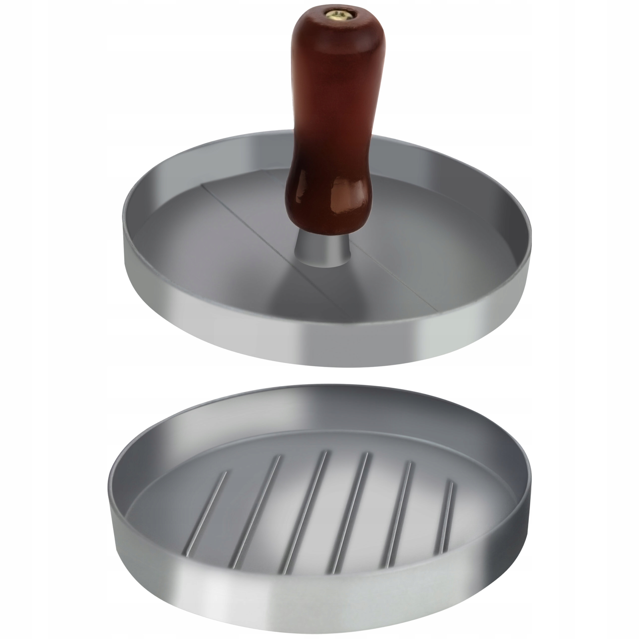 Формує котлети діаметром 11,5 см і 1,3 см у висоту. Складається з двох частин - основи і преса. Прес оснащений складною дерев'яноюручкою, що полегшує натискання.