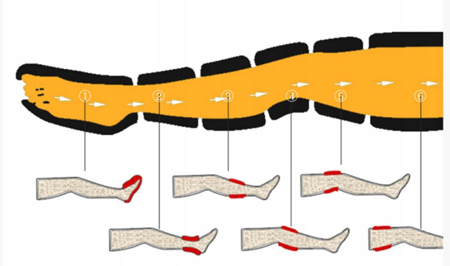 Наш масажер має аж 6 зон/камер, які забезпечують повне охоплення ніг і можливість пристосовувати процедури до індивідуальних потреб користувача. Крім того, наш масажер має функцію охоплення ніг на 360 градусів, що забезпечує ще краще проникнення в м’язи.