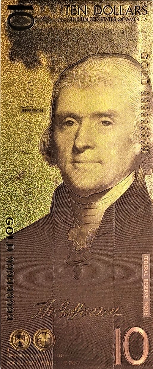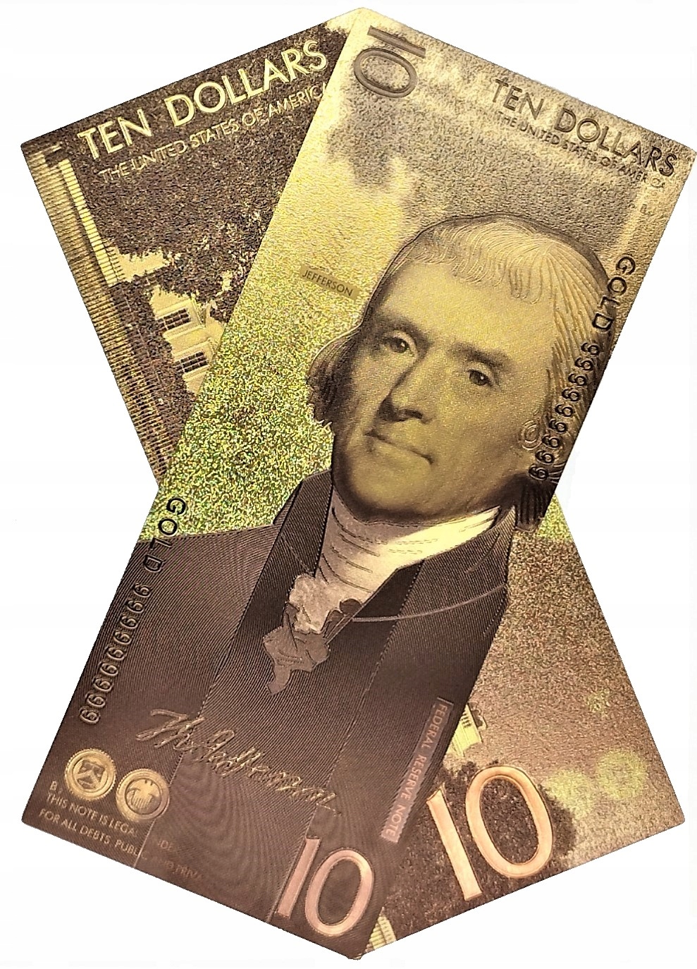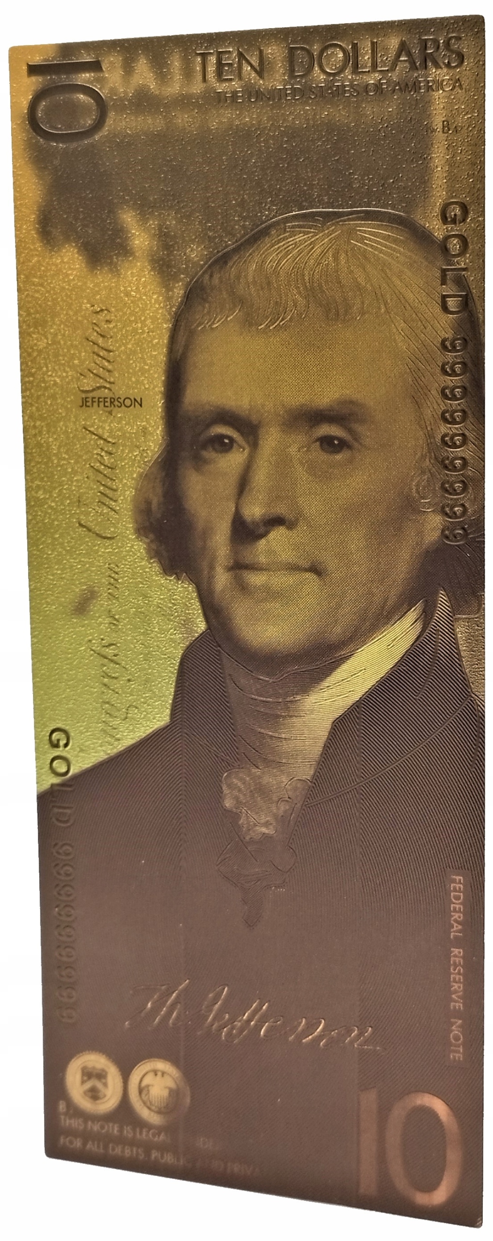 Красива колекційна банкнота 10 доларів із зображенням 3-го Президента Сполучених Штатів Томаса Джефферсона.