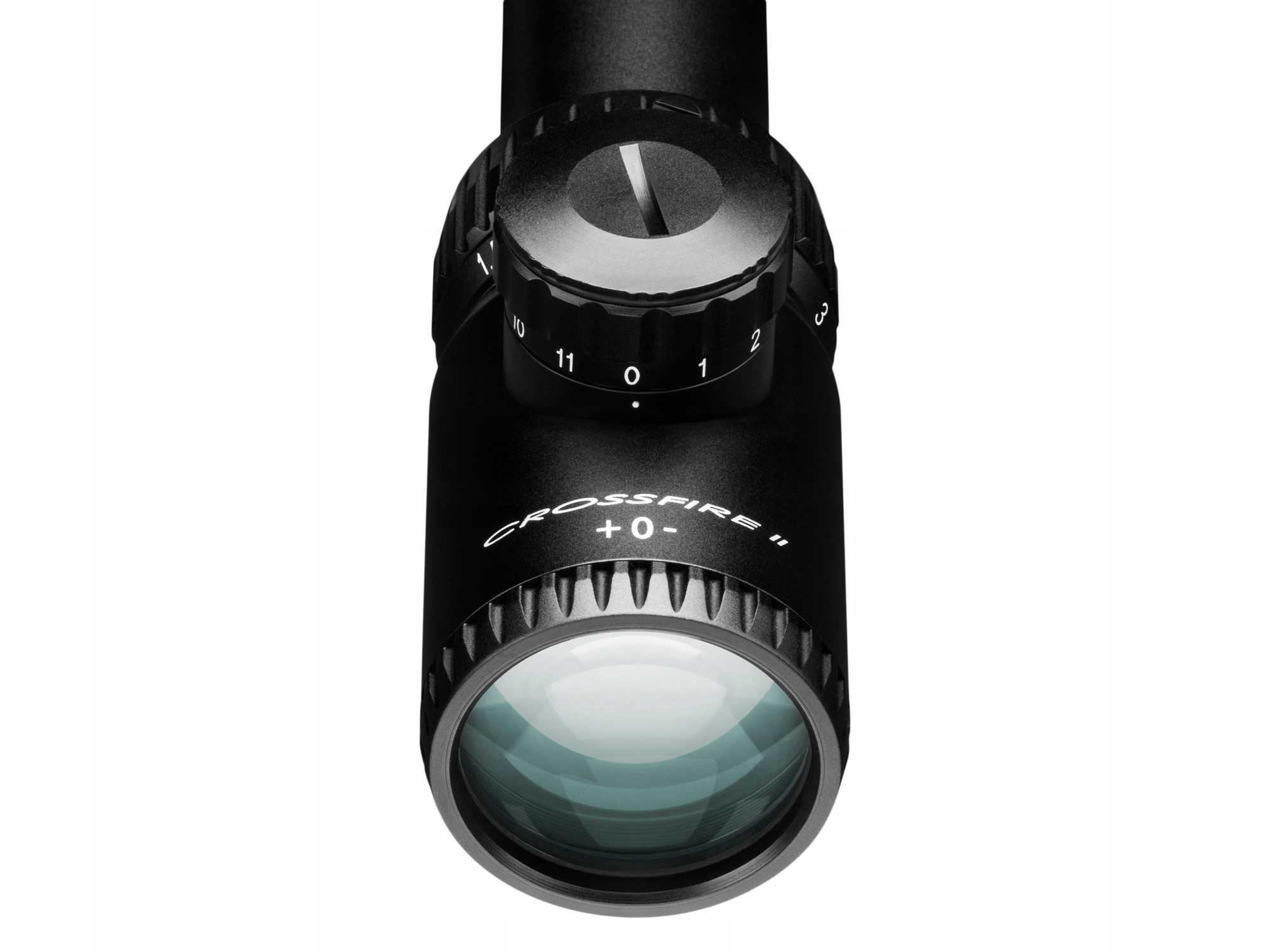 Vortex Crossfire II 1-4×24 — приціл, призначений для групового полювання. Через динаміку ситуації групового полювання та абсолютну необхідність дотримання безпеки основним критерієм оцінки таких прицілів є широке поле зору. Представлений телескоп охоплює однократне збільшення 35 м/100 м, а зображення без спотворень і чітке до самого краю поля зору. Дивлячись крізь нього, створюється враження, що ми бачимо ціль у площині окуляра (без так званого ефекту трубки). Завдяки тому, що об'єкт відтворюється в природних пропорціях, можна цілитися в бінокль, забезпечуючи необмежений огляд обстановки та значно підвищуючи безпеку пострілу
