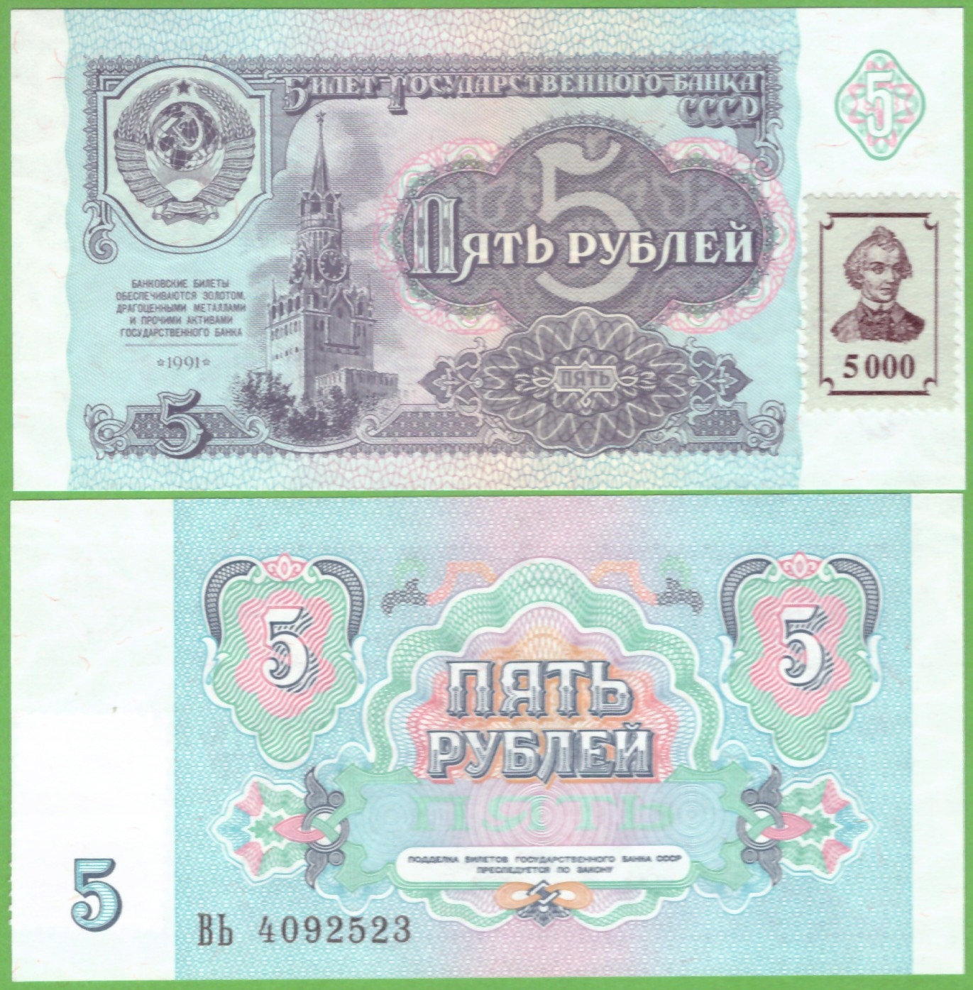 ПРИДНІСТРОВ'Я 5000/5 РУБЛІВ 1991 P-14B UNC
