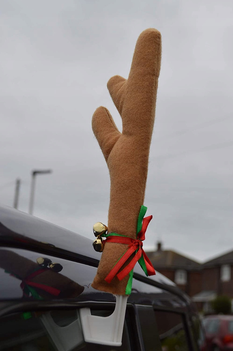 - Оленячі роги з м'якого матеріалу, набиті ватою, посилені пластиком - легко прикріпити до вікон автомобіля (на бокових вікнах, що відкидаються),