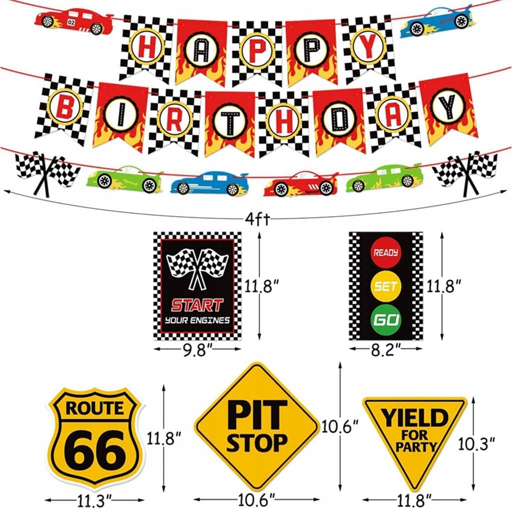 - Ідеальний набір для святкування дня народження для будь-якого випадку. Багатий набір для вечірки можна використовувати для святкування дня народження, він також ідеально підходить для фестивалю та прикраси свята дитини, підходить для вечірки на тему гонок, день народження та інші особливі події, які ви хочете прикрасити.