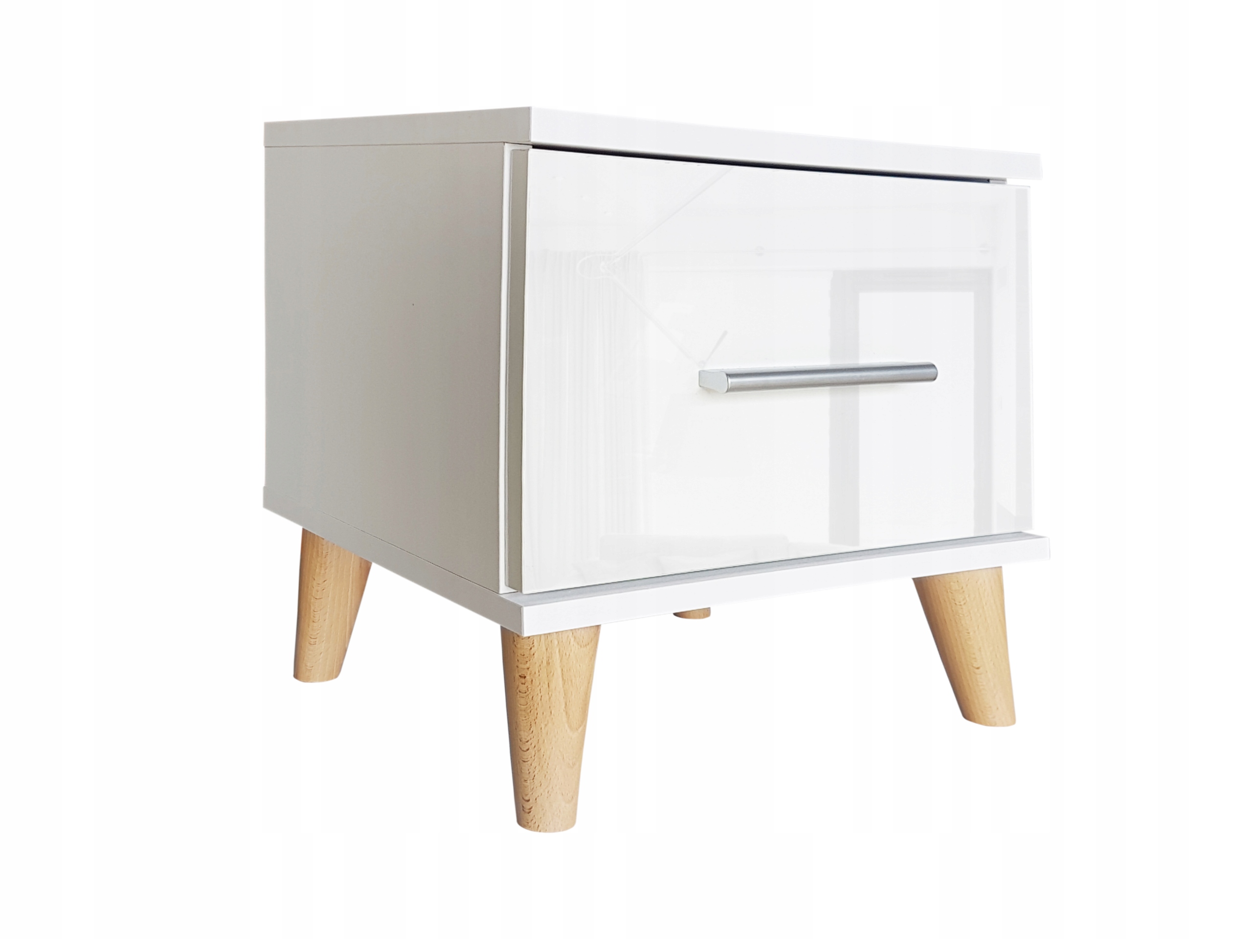 Глянцева біла передня частина ящика та матова алюмінієва ручказроблять вашу спальню яскравіший і оптично більший.